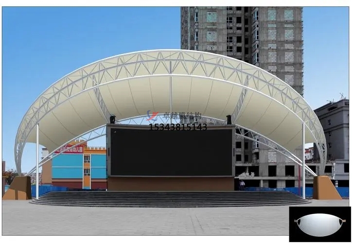 輕質與安全性:膜結構舞臺自重小,依靠預應力形狀保持穩定性,同時具有滿足的安全性,能在地震等水平荷載作用下保持穩定。