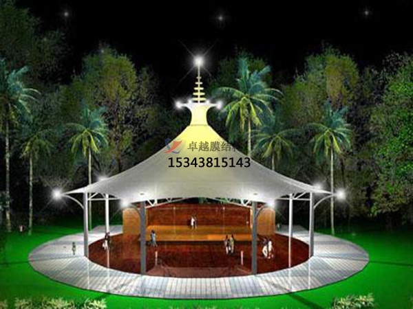 第三點,膜結構舞臺內部采用Φ38鍍鋅圓管與車棚框架焊接,加強棚頂部強度,可讓棚內感覺寬敞明亮,停靠車輛輕松方便,完全符合舞臺制作要求規范;