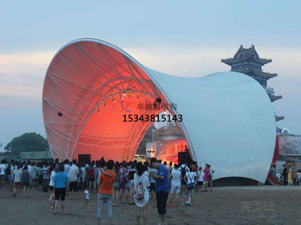膜結(jié)構(gòu)舞臺(tái)是膜結(jié)構(gòu)材料近年來應(yīng)用的一個(gè)新領(lǐng)域,膜結(jié)構(gòu)建筑能很好的籠罩全部的舞臺(tái),膜結(jié)構(gòu)的張拉樣式使得建筑的空間跨度變的更大,同時(shí)能縮小建筑的結(jié)構(gòu),建筑的整體重量減輕,這樣施工就會(huì)變的簡(jiǎn)單安全。這些都是膜結(jié)構(gòu)被廣大用戶選擇的關(guān)鍵因素。膜材的表面都有一種涂層,涂層是為了預(yù)防灰塵雨水的影響,起到保護(hù)膜結(jié)構(gòu)使用年限的作用。