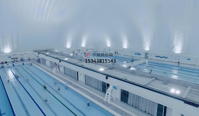 膜結構游泳館具有良好的保溫隔熱性能,同時膜結構更有利于空氣流通和污染控制,有效減少氯氣、異味等問題,提升整體舒適度,且能有效阻擋外界熱量傳入或傳出,穩定館內溫度,為游泳者營造舒適的環境,同時也降低了空調等設備的能耗。膜結構游泳館的建設周期短,成本較低。氣膜建筑修建迅速,既環保節能又恒溫防水防潮,在整體建筑環節中不應用一磚一瓦,節約了大多數的建筑成本膜結構的加工制作可在工廠完成,現場安裝速度快,與傳統建筑相比,能大大縮短建設周期,盡快投入使用。膜結構游泳館場館內配備24小時智能檢測系統,實時監測空氣質量、溫度和濕度,確保泳池水質清澈、空氣清新,讓每一位泳者都能暢享健康舒適的運動體驗。膜材具有良好的耐候、防水性能,不會像傳統鋼結構那樣出現場館銹蝕的問題。氣膜游泳館的頂部一般采用弧形設計,水汽不易凝結,因此膜面也不會發生霉變。