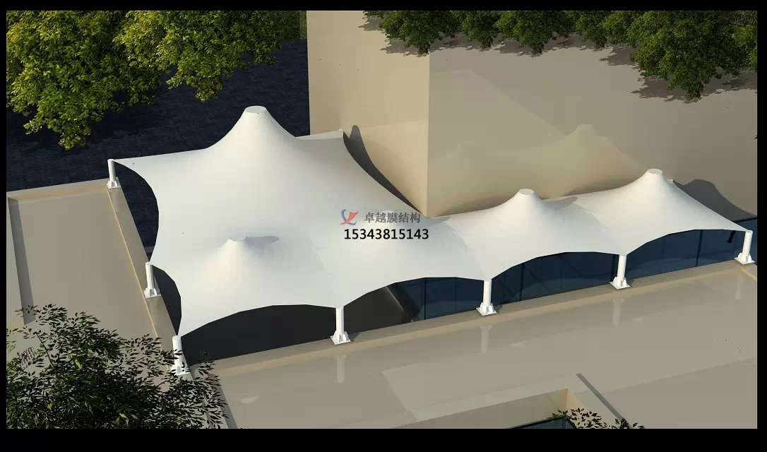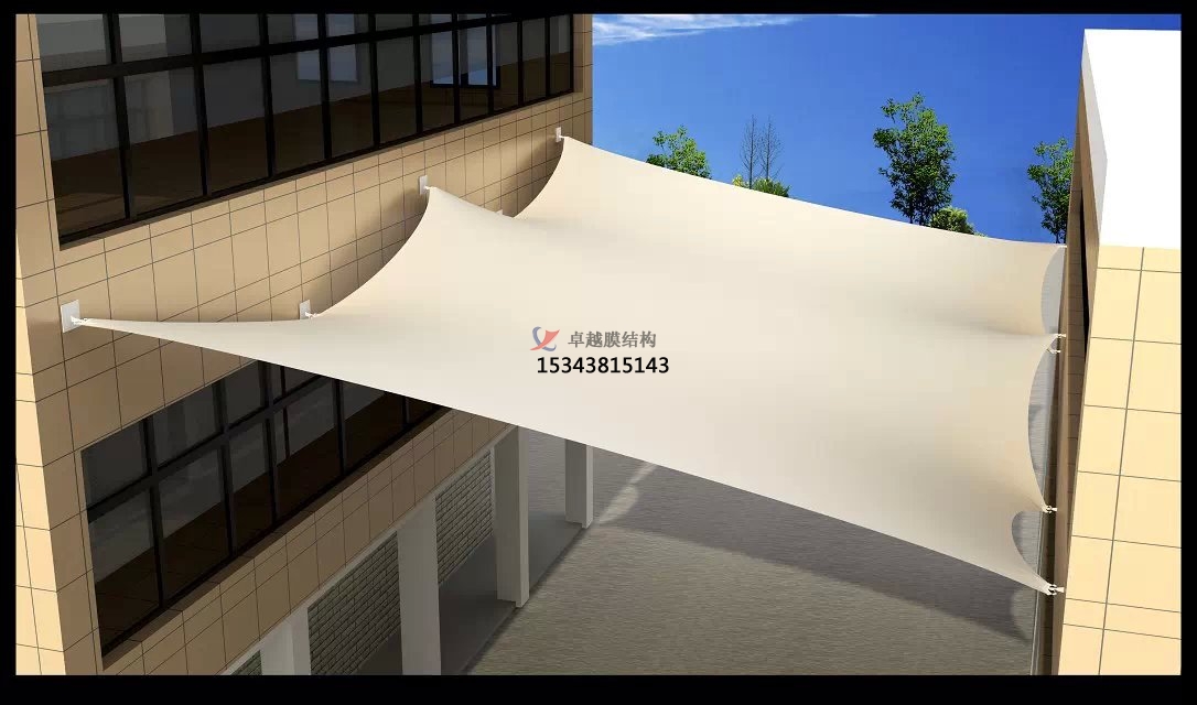 古老的走廊、連廊大多是以廊瓦橫梁木柱組建而成沒有透光性可言,年久失修就會有漏水現象。而現在走廊、連廊膜結構的出現是一個時代在改變,別具一格的建筑形式展現了獨特的現代風格,造型自由、輕巧、柔美,充滿力量感,無論在商場還是街道都有非常好的遮陽擋雨效果,再加上炫彩的外觀,成為城市一流美景。
