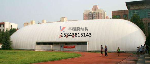 體育運動館。充氣膜憑借大跨度和保溫隔熱性能,可制作成各種充氣膜運動館,比如:充氣膜籃球館、充氣膜足球館、充氣膜網球館、充氣膜游泳館、充氣膜冰球館等等。