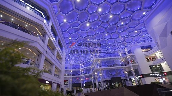 工程結構形式:骨架張拉商場頂棚膜結構