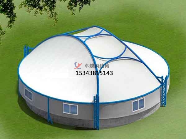 膜結構在污水處理池上的應用不僅外表美觀而且耐用使用壽命比彩鋼板,玻璃鋼制品,及水泥板都有較好的優勢,從日后維護也為使用單位節省大量人力財力。