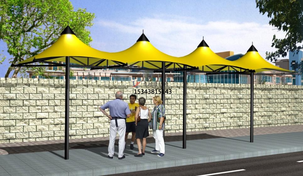 膜結構雨棚是一種全新的建筑結構形式,它集建筑學、結構力學、精細化工與材料科學、計算機技術等為一體,具有很高技術含量。其曲面可以隨著建筑師的設計需要任意變化,結合整體環境,建造出標志性的形象工程。