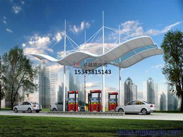 膜結構雨棚是一種全新的建筑結構形式,它集建筑學、結構力學、精細化工與材料科學、計算機技術等為一體,具有很高技術含量。其曲面可以隨著建筑師的設計需要任意變化,結合整體環境,建造出標志性的形象工程。