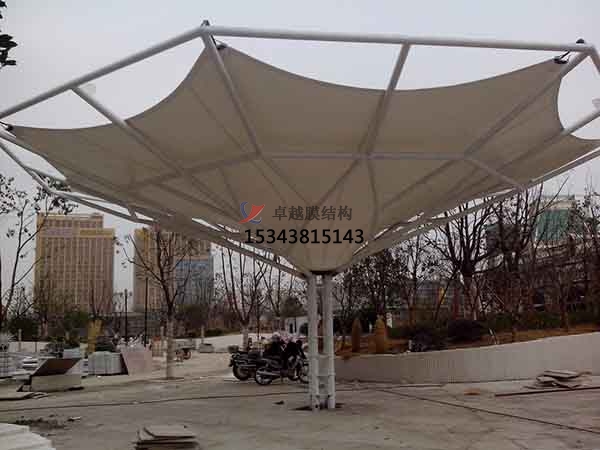 膜結構輕巧別致極具現代化風格,且易于安裝移動,在商業街設計中得以廣泛應用。 因此,除了功能以外,還應有很強的標識性,并能體現建筑的個性,是建筑環境和城市景觀的重要組成部分。由于膜結構獨特的造型是其他結構類型無法比擬的,故成為近來建筑入口經常采用的形式。