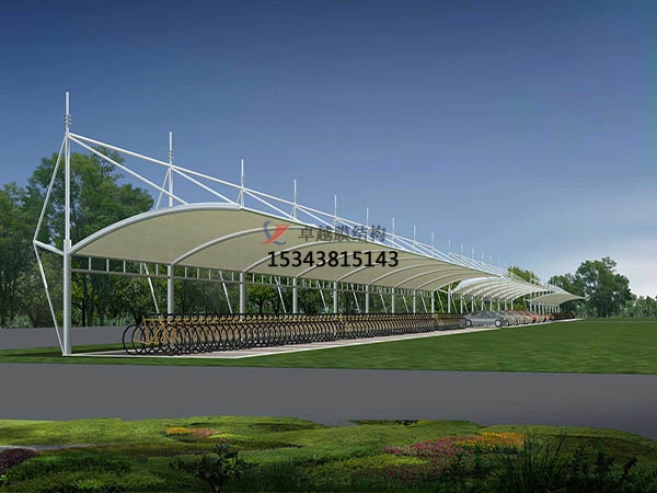 建筑造型優(yōu)美, 膜結(jié)構(gòu)車棚建筑是21世紀更具代表性與充滿前途的建筑形式。它打破了純直線建筑風(fēng)格的模式,以其獨有的優(yōu)美曲面造型,簡潔、明快、剛與柔、力與美的完美組合,呈現(xiàn)給人以耳目一新的感覺,同時給建筑設(shè)計師提供了更大的想象和創(chuàng)造空間。