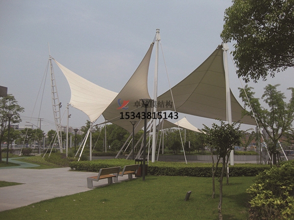 由于膜結構的拉伸強度較好,因此可以滿足很多方面的功能需求,搭建膜結構工程可以用來裝飾、雨棚、景觀等等。此外,膜結構不僅使用起來方便,還可節省空間。