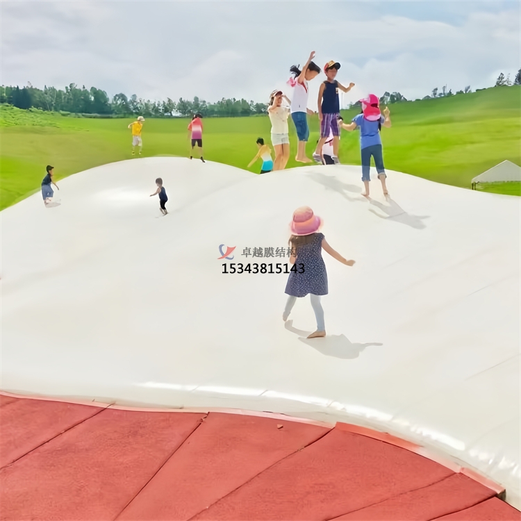 蹦蹦云是新型無動(dòng)力兒童互動(dòng)體驗(yàn)設(shè)施,似朵朵白云、形象新穎;整體采用的膜結(jié)構(gòu)拼接而成??杀摹⒖苫⒖膳?。適合很多年齡段兒童和成人使用。