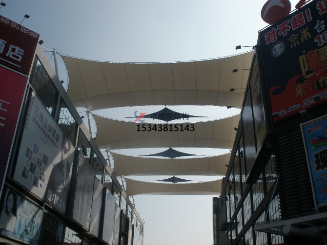 2.經(jīng)濟(jì)性:由于膜材具有一定的透光率,白天可減少照明強(qiáng)度和時(shí)間,能很好地節(jié)約能源。同時(shí)夜間彩燈透射形成的絢爛景觀也能達(dá)到很好的廣告宣傳效益