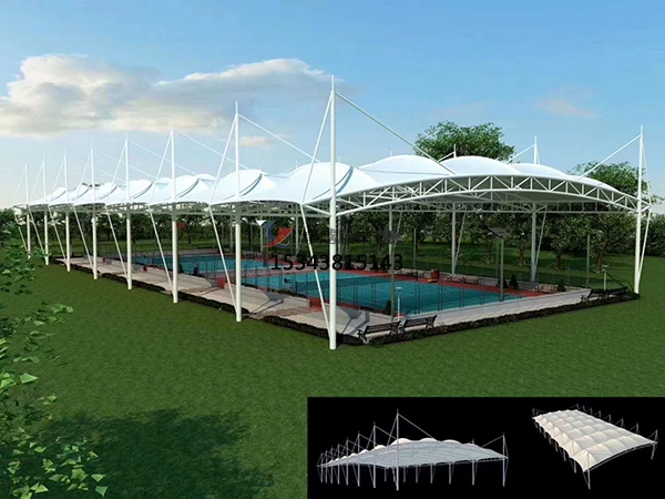 羽毛球場遮陽棚核心材料特性:其核心材料主要是膜材,支撐材料和附加功能。其中膜材的特性是高透光率(如ETFE膜)、阻燃、抗紫外線,使用壽命可達15年以上。支撐材料鍍鋅鋼管或鋁合金支架,部分產品采用張拉膜技術提升結構穩定性。部分遮陽棚集成防水、隔熱層,適應多氣候環境。