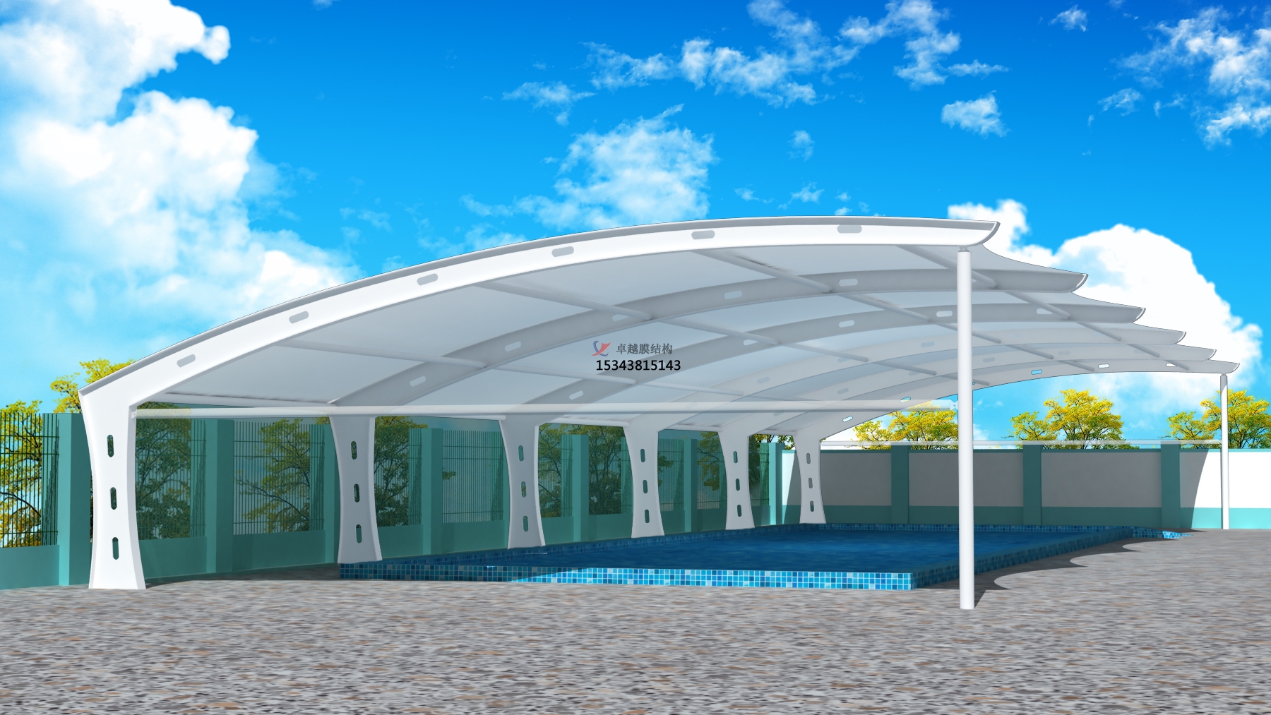 3、柔性:張拉膜結構不是剛性的,其在風荷載或雪荷載的作用下會產生變形。膜結構通過變形來適應外荷載,在此過程中荷載作用方向上的膜面曲率半徑會減小,直至能更有效抵抗該荷載。