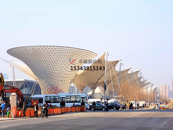 西藏PTFE膜結構是一聚四氟乙烯的含量不低于90%為主要材料涂在織物基材的膜材料。織物基材主要以玻璃纖維,纖維的直徑范圍應在3.30~4.05μm 范圍內,重量應大于150g/m。