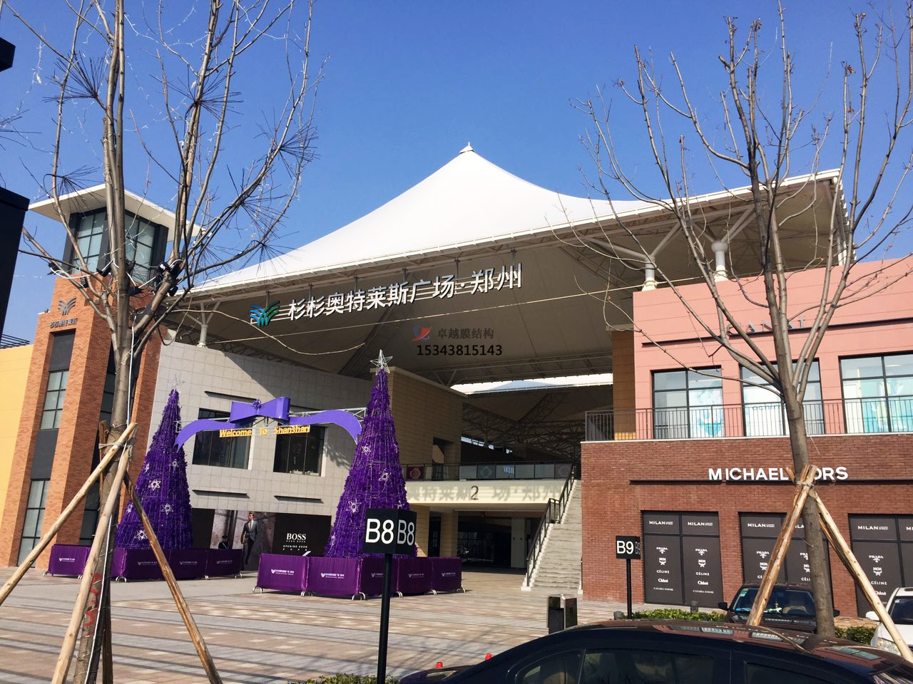 3.膜結構屋面安全性要求非常高,而PTFE膜結構材料更大的魅力在于它強度高、耐久性好、防火難燃、自潔性好,不受紫外線影響,使用壽命在25年以上。具有高透光率,透光率為13%, 對熱能反射率73%,PTFE膜熱吸收量很少。PTFE膜材讓膜結構屋面有成為現代化的永久性建筑。