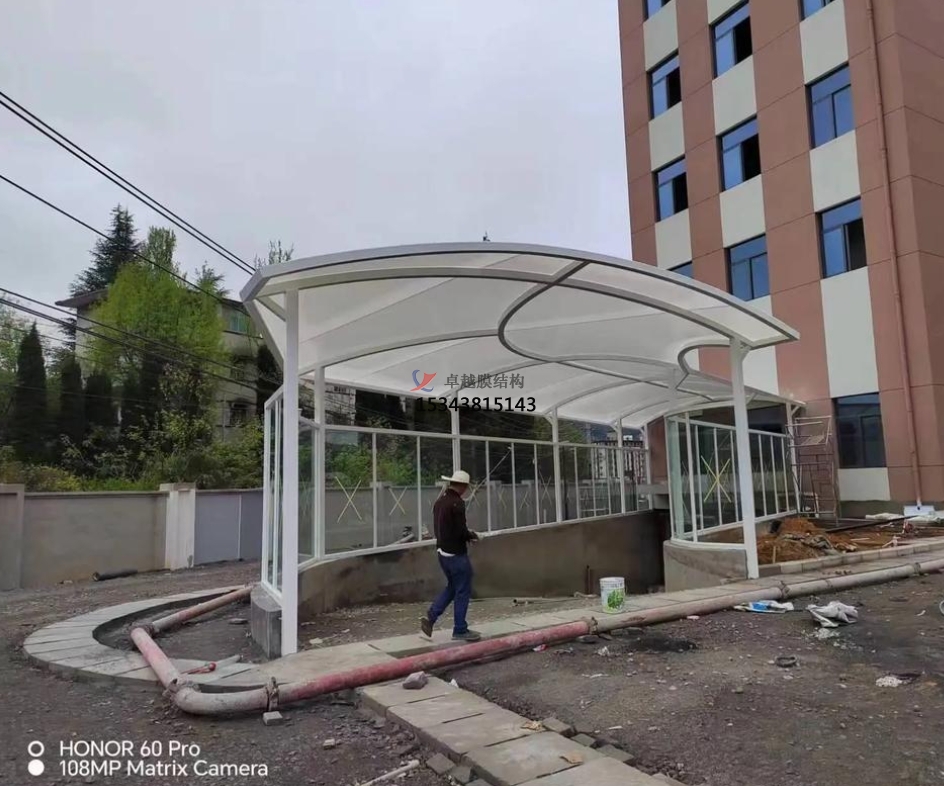 膜結構資料具有杰出的柔韌性,能夠塑造出豐富多樣的造型。無論是簡練流暢的直線型,還是優雅靈動的曲線型,亦或是富有創意的異形,都能與修建全體風格相交融,為地下車庫出入口增加共同的美感。如一些現代化的商業修建,其地下車庫出入口選用了膜結構雨棚,共同的造型與修建外觀相輔相成,提高了整個修建的層次和吸引力。