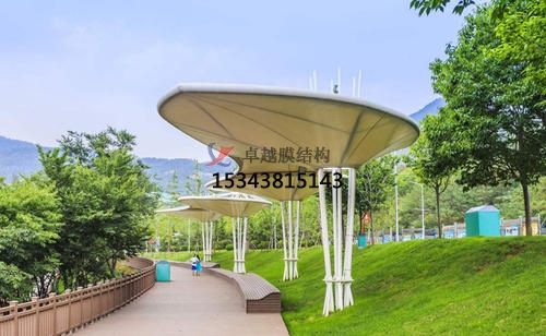 城市中廣場、公園是一種特別的休閑空間,其修建形象是經過公眾在不一起間在其間的集聚得以體現。近年來隨著修建膜材的開發和使用,張拉膜景觀在國內外得到迅速開展
