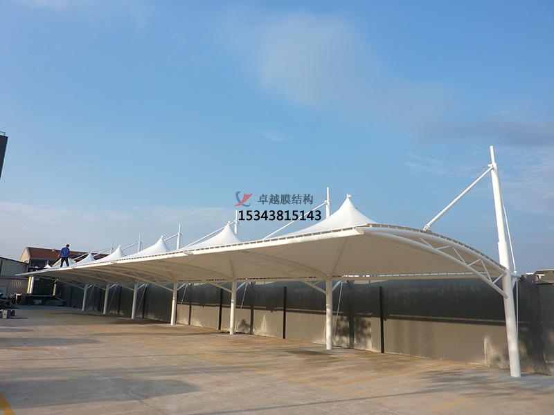 三門峽電動車充電膜結構遮陽棚是一種新型的環保節能建筑,它采用高強度膜材料作為結構支撐,具有輕便、強度高、防水、防曬、隔音、隔熱等特點。