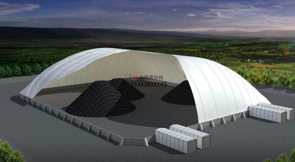 在充氣膜建筑應用上,“露天煤場”變“封閉煤倉”,應用PVDF膜材,抗化學腐蝕、抗氧化性,以及膜材的特殊性能。充氣膜建筑實踐于煤場,即落實了更好的環(huán)保政策,又推進煤場問題改革,實現(xiàn)了產(chǎn)煤不見煤、存煤不露煤、料場全封閉的改革標準。“煤場”變“煤倉”,一張高效、安全、清潔、綠色的企業(yè)矗立,成為企業(yè)對外的新名片。