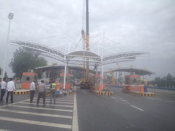 九江卓越膜結構工程公司是專業從事收費站雨棚,高速高速公路膜結構、高速服務區充電站配套雨棚,高速公路服務區景觀遮陽棚,高速公路加油站罩棚的專業廠家,擁有一批國內更早從事膜結構行業的工程技術人才,并與九江地區各著名設計院、大學都有緊密合作,使用國際更先進的膜結構建筑設計軟件、荷載分析軟件、找型裁剪軟件、結構計算軟件,充分保證了九江卓越公司在中國膜結構領域技術領先性。下面給各位介紹一下我公司在九江及周邊縣市完工的一批高速公路收費站膜結構工程案例。