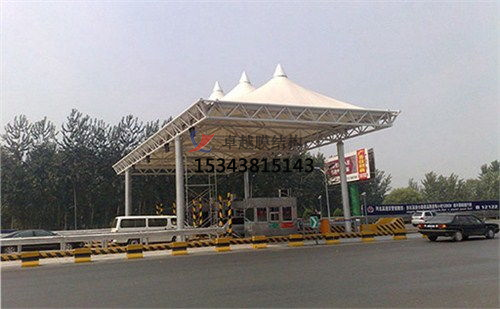 整個收費站的建筑面積達到了2000多平方米,由兩個巨大的膜結(jié)構(gòu)組成,每個膜結(jié)構(gòu)的尺寸為15mx35m。在收費站的使用過程中,膜結(jié)構(gòu)能夠承受大量的車輛和行人通行,保證收費站的正常使用。