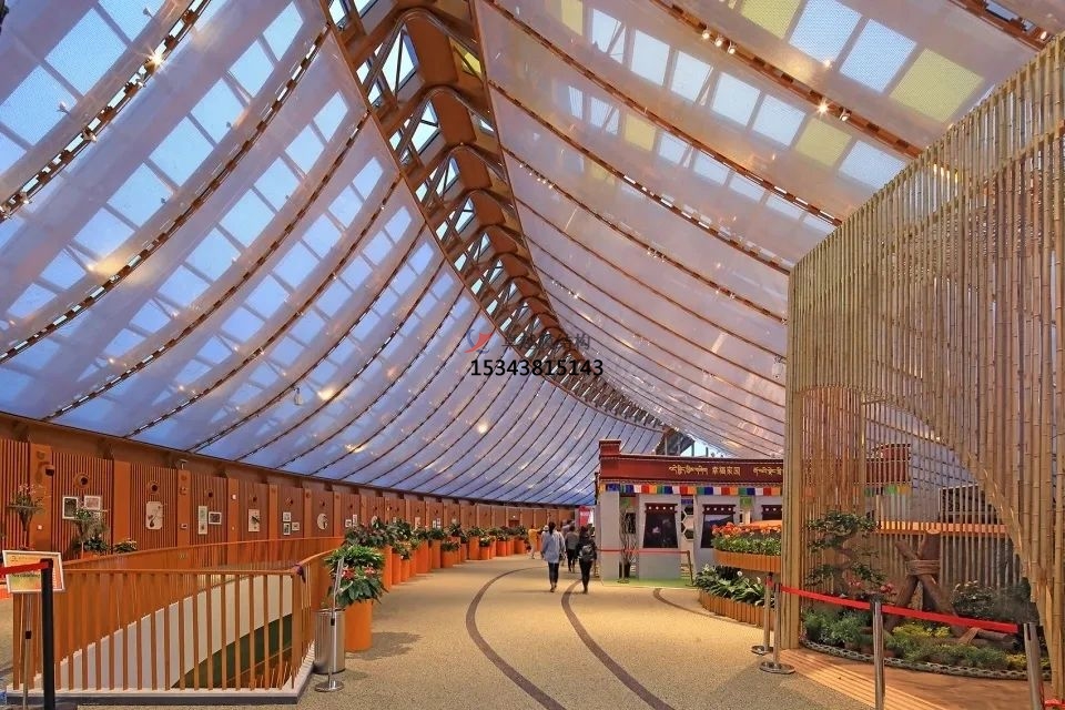 張拉膜結構遮陽棚能夠遮擋陽光中的紫外線,減少商業街區的陽光直射,改善商業街區的環境。同時,膜結構遮陽棚的透光性能較好,不影響商業街區的采光,為行人提供一個舒適、自然的購物環境。