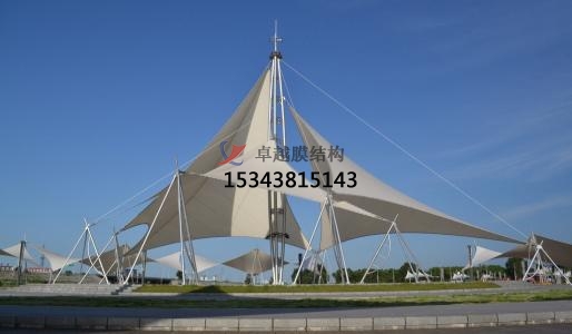 一個城市的中心區反映一個城市的地理風貌和民族風情,一起,也是一個城市文化開展程度的標志。而景象規劃要求其具有廣泛的可讀性、老少皆宜,既有超凡脫俗的藝術價值,又能使群眾喜聞樂見與群眾息息相通。張拉膜以其輕盈飄逸的造型、柔美并帶有力氣的曲線和大跨度和大空間的鮮明個性和標識性,應用于城市小品規劃中。