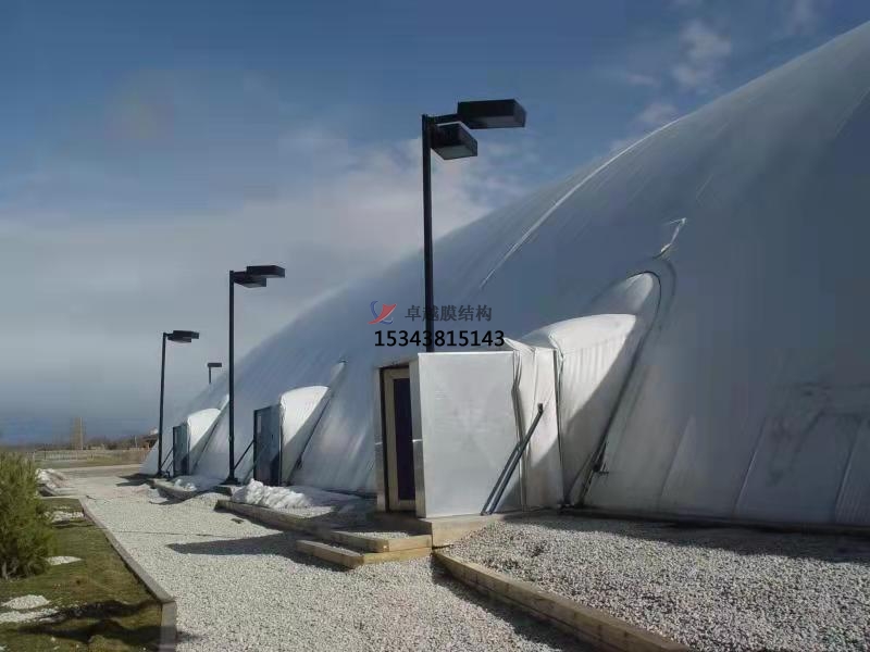 這就是氣膜儲煤場煤棚建筑相比于傳統煤場建筑的優勢,達到了節能減排的作用,同時也抑制了煤炭揚塵,解決了企業要求環保所面臨環境污染,煤炭倉儲等問題。氣膜建筑已在工業煤場,商業體育,環保等行業應用領域運用。憑借大量的創新型技術,快捷的施工工藝,為用戶提供多功能智能環保氣膜建筑。