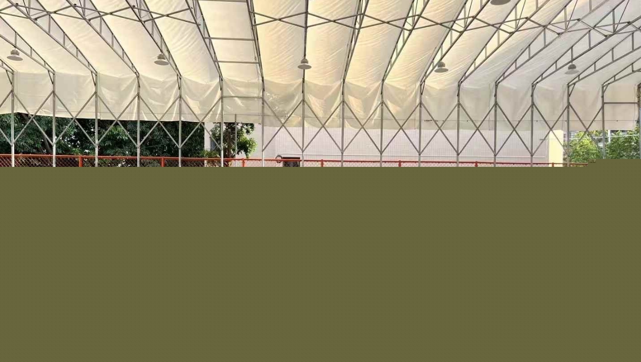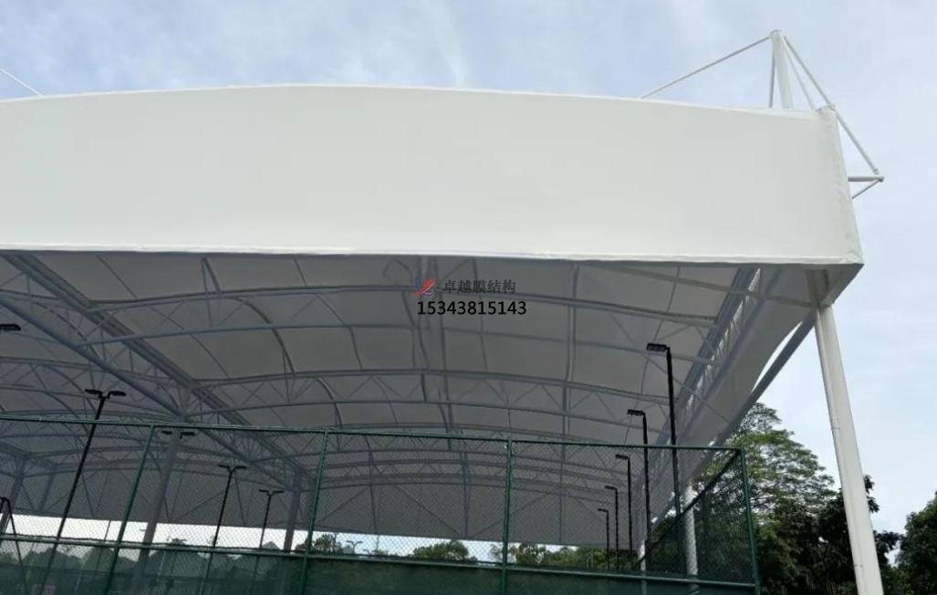 籃球場膜結構,以高強度膜材構成,采用先進的張拉技術,形成曲面覆蓋體系。其骨架采用碳鋼或鋁合金材料,經特殊焊接工藝制成。膜結構自重輕,抗風壓性能優良,確保籃球場安全穩固。在保證籃球場美觀的同時,提供舒適的運動環境。