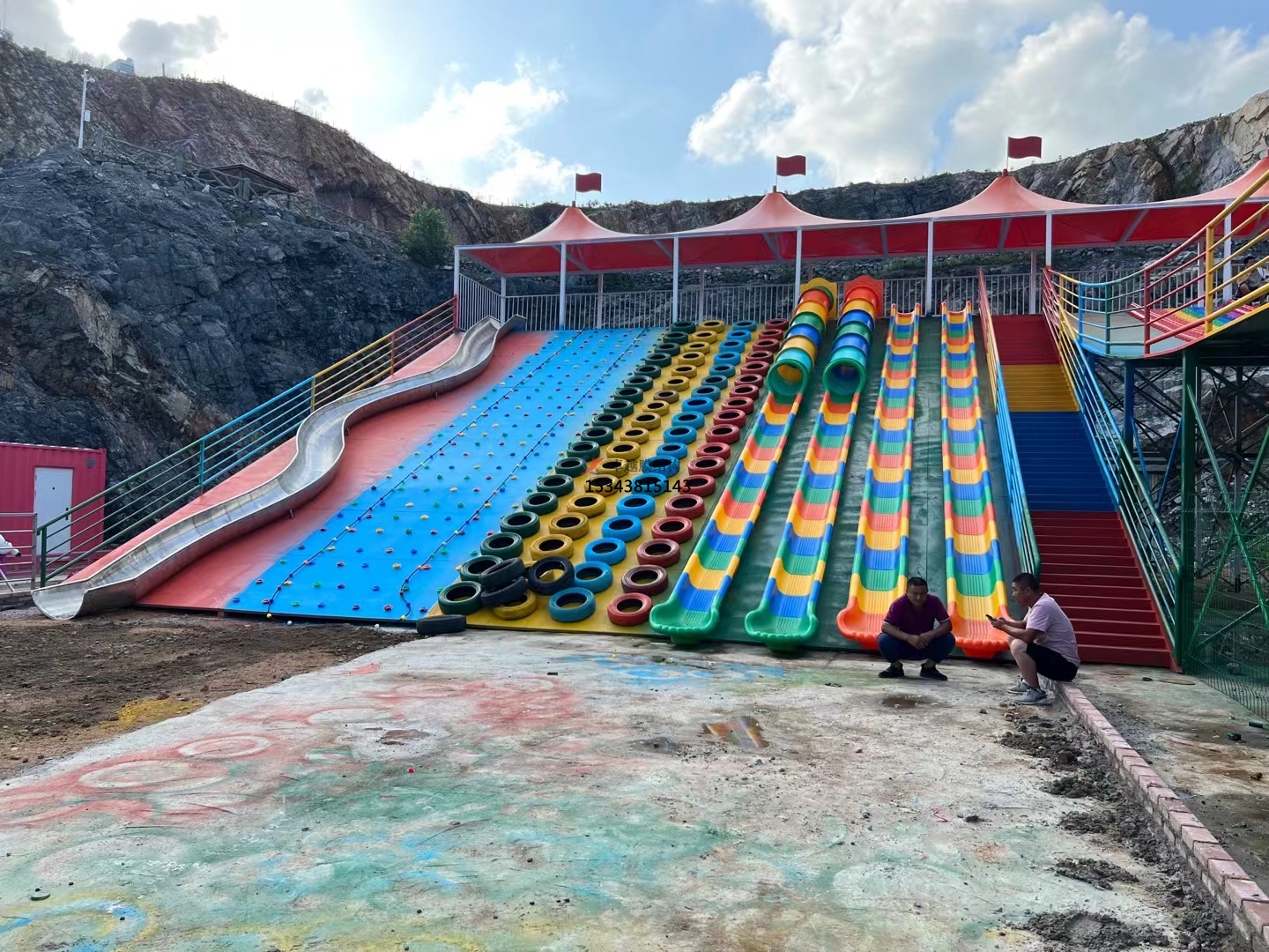 確保安裝過程符合安全規范,張拉膜頂與彩虹滑道完美融合。