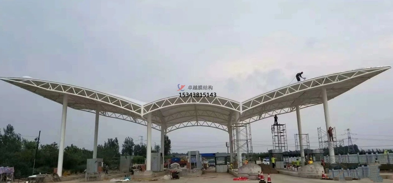 張拉式、骨架式、索膜式等結構形式,結合 BIM 技術優化曲面形態,既滿足力學需求,又實現 “建筑即雕塑” 的美學效果。例如,陸屋鎮高速收費站采用 PTFE 膜與鋼結構結合,通過預張拉技術形成流暢的曲線造型,成為區域地標。