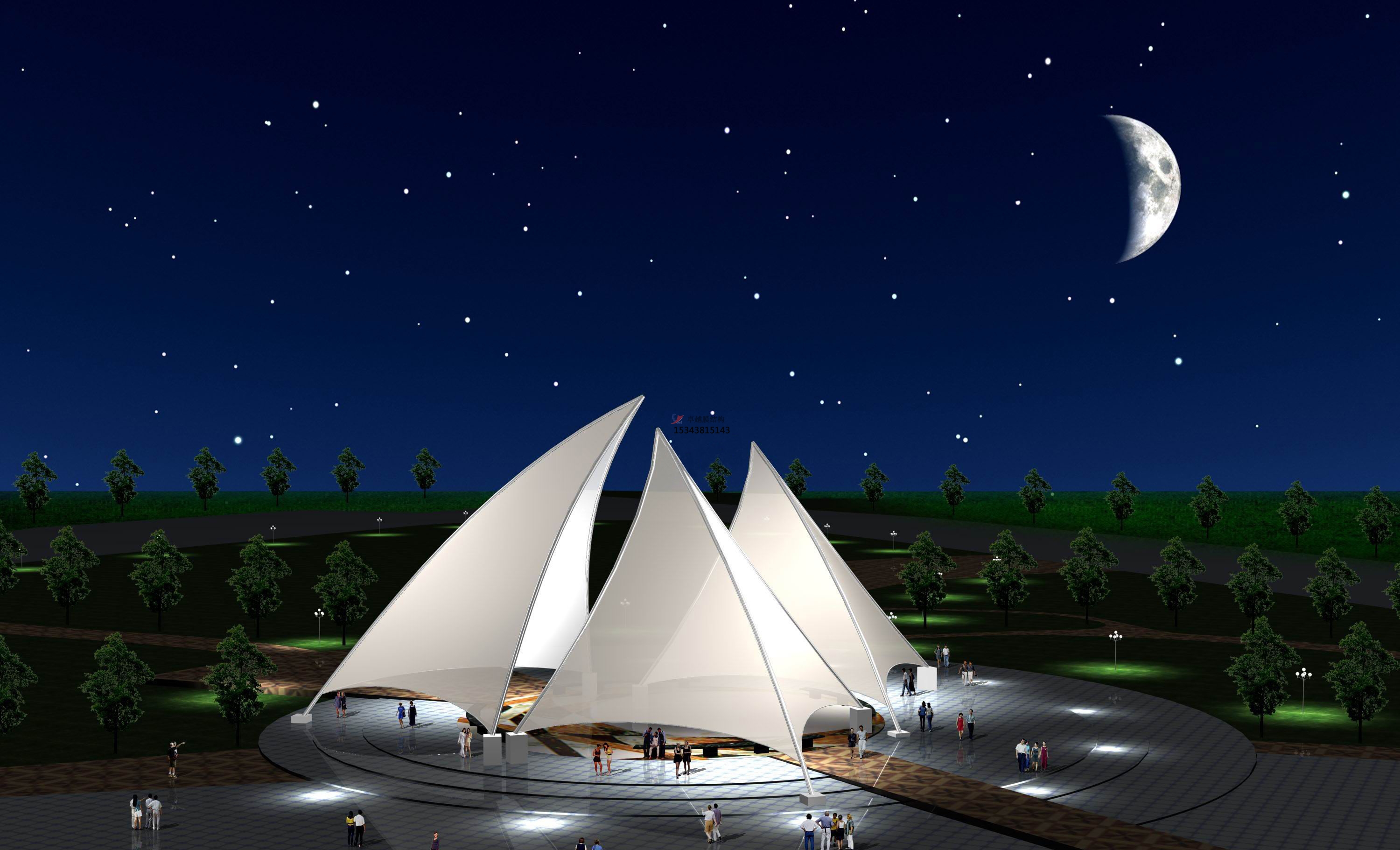 四、膜結構裝置過程中不該發生雨水積存現象。一起應依據降雨的程度決議工程的間斷和繼續。