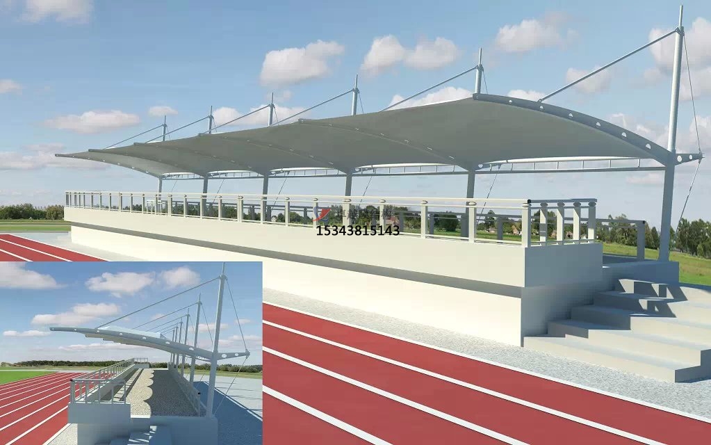 張拉膜看臺主要用于各類地方體育場主席臺雨棚,各類學校體育場看臺雨棚遮蓋,我公司是國內較早從事大懸挑張拉膜結構看臺設計施工的專業廠家,下面介紹一下我們在扶風縣周邊縣市完工的一些張拉膜看臺設計施工案例,我公司先后在扶風縣周邊承接了扶風縣初級中學膜結構看臺雨篷/主席臺/舞臺安裝雨棚、扶風縣天度鎮天度中心小學張拉膜張拉膜看臺罩棚、扶風小學張拉膜看臺遮陽棚等設計施工項目,簡介如下:
