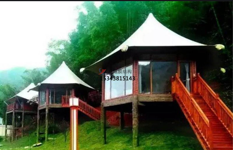 其搭建過程對周邊自然環境破壞少,可以更好地與融入景區環境,再配合特色打造的拉膜造型,可 成為在戶外帶來五星級野者體驗的美觀實用帳篷酒店!