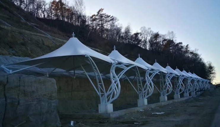 工程施工地址:黑龍江伊春市嘉蔭縣 膜材選材型號:法國 法拉利膜材PVDF 1202T2 選用膜材拉力:5900N-6900N 鋼構選用材料: 鞍鋼生產的Q235B高頻焊管及Q345無縫鋼管 工程施工周期:總工期29日歷天 索膜結構形式:管桁架四邊張拉索膜結構看臺 工程完工面積:膜材展開面積589㎡" />