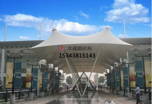 一個城市的中心區(qū)反映一個城市的地理風(fēng)貌和民族風(fēng)情,同時,也是一個城市文化發(fā)展程度的標(biāo)志。而景觀設(shè)計要求其具有廣泛的可讀性、雅俗共賞,既有超凡脫俗的藝術(shù)價值,又能使大眾喜聞樂見與大眾息息相通。膜結(jié)構(gòu)以其輕盈飄逸的造型、柔美并帶有力量的曲線和大跨度和大空間的鮮明個性和標(biāo)識性,應(yīng)用于城市小品設(shè)計中。