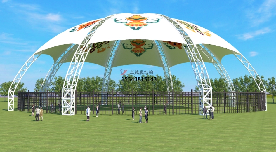 別看膜結構看似輕盈柔弱,實際上它卻擁有著出色的力學性能。它能夠承受一定程度的風雪荷載、風荷載等自然外力,并且具有良好的自潔性,經過特殊處理的膜材表面能夠在雨水的沖刷下自動清潔灰塵和污漬,保持外觀的整潔美觀。此外,膜材還具備較好的防火、防腐、耐老化等性能,確保了景觀棚在長期使用過程中的穩定性和安全性。