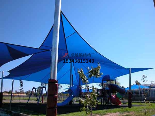 三、膜面坡度平緩處采取對策,預防膜面積水、積雪:膜結構景觀需要盡可能保證膜面的排水坡度,但為了實現膜結構景觀的大跨度,有可能存在膜面平緩的,為了防止膜面積水造成膜結構景觀破壞事故,有時需要采取膜面開溢流口的措施。