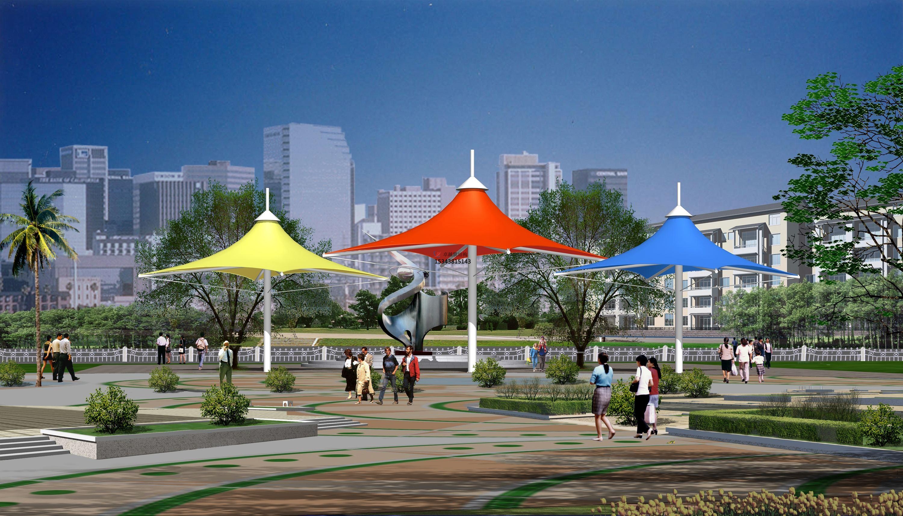 2、 透光性:透光性是現代景觀膜結構遮陽棚更被廣泛認可的特性之一。膜材的透光性可以為建筑提供所需的照度,這對于建筑節能十分重要。對于一些要求光照多且亮度高的商業建筑等尤為重要。通過自然采光與人工采光的綜合利用,膜材透光性可為建筑設計提供更大的美學創作空間。夜晚,透光性將景觀膜結構遮陽棚變成了光的雕塑。