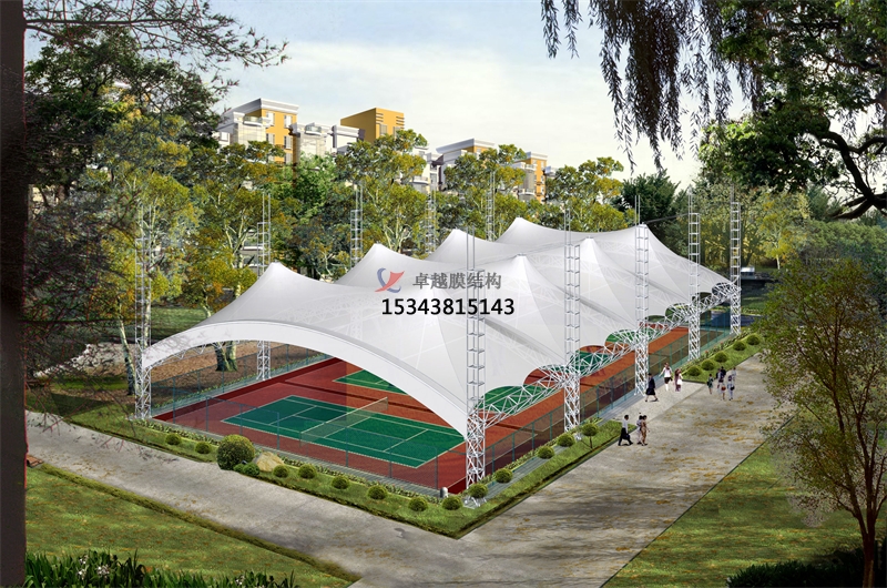 網球場膜結構選用膜材料的好處:因為膜材料自重輕,具有良好的受力特點——成為大跨度空間結構的主要形式之一。網球場膜結構建設成為現代城市規劃的重要組成部分,變的越來越重要。膜結構輕巧、別致的造型在網球場、籃球場和門球場的建設中擔當了重要角色,除了滿足防風雨、防日曬等基本功能外,并有較好的標識招攬效果,展現了人們個性化的一面。