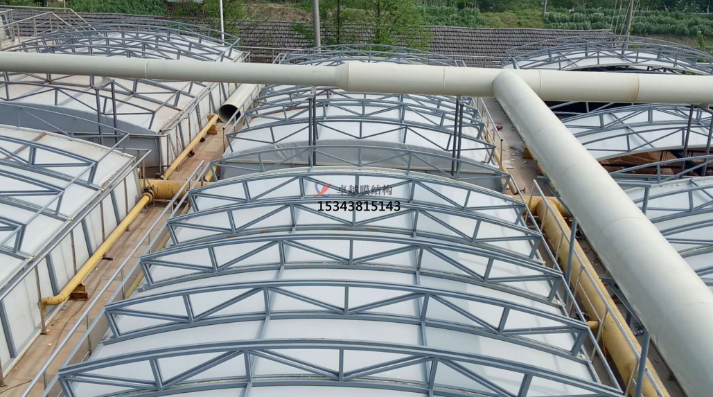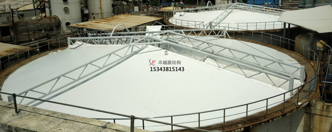 反吊膜用在污水廢氣治理上效果明顯.膜材占了很大的優勢。目前市面上許多的反吊膜工程都是采用PVDF膜材.當然能用在膜結構上的膜材不止這一種,還有ETFE膜材、PTFE膜材等,但相對來說PVDF膜材是較為適合做反吊膜的,原因在于:
