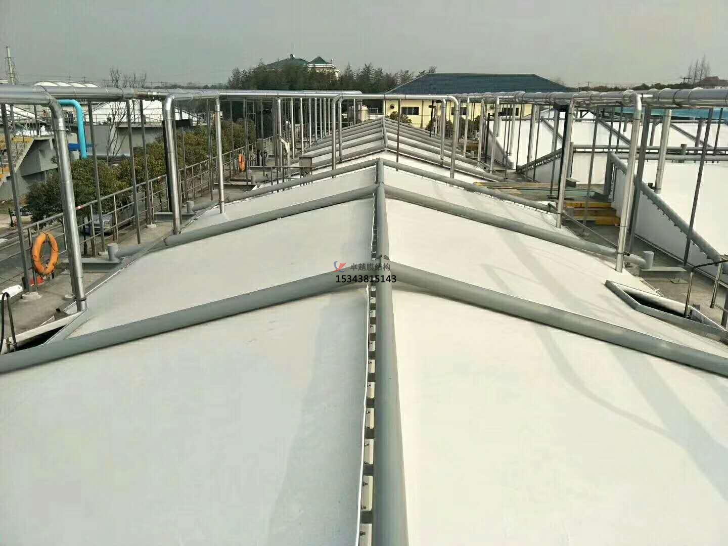 6、膜結構污水池加蓋具有結構牢固、外觀新穎,經濟適用,適用壽命長,節能環保等優點。深受廣大用戶的一致好評,卓越所有工程全部都是通過專業3D3S膜結構軟件計算通過,結構安全,質量可靠。