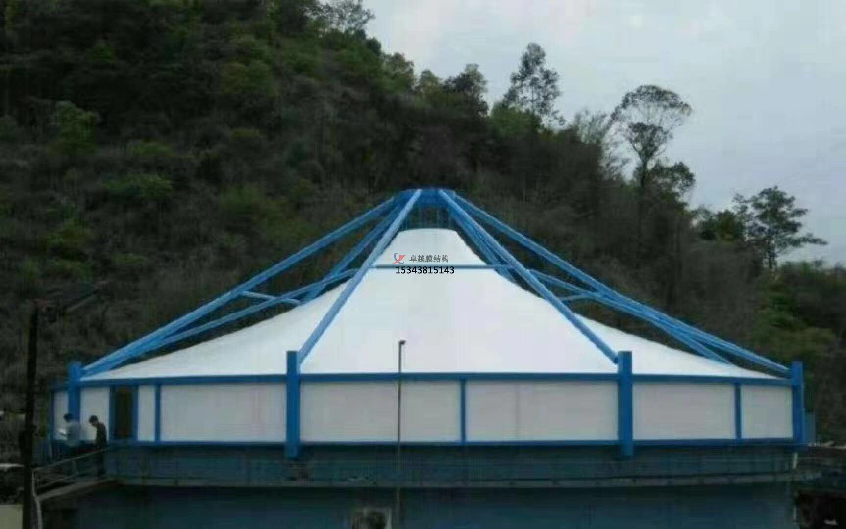 5、膜結構污水池加蓋具有結構牢固、外觀新穎,經濟適用,適用壽命長,節能環保等優點。深受廣大用戶的一致好評,卓越所有工程全部都是通過專業3D3S膜結構軟件計算通過,結構安全,質量可靠。