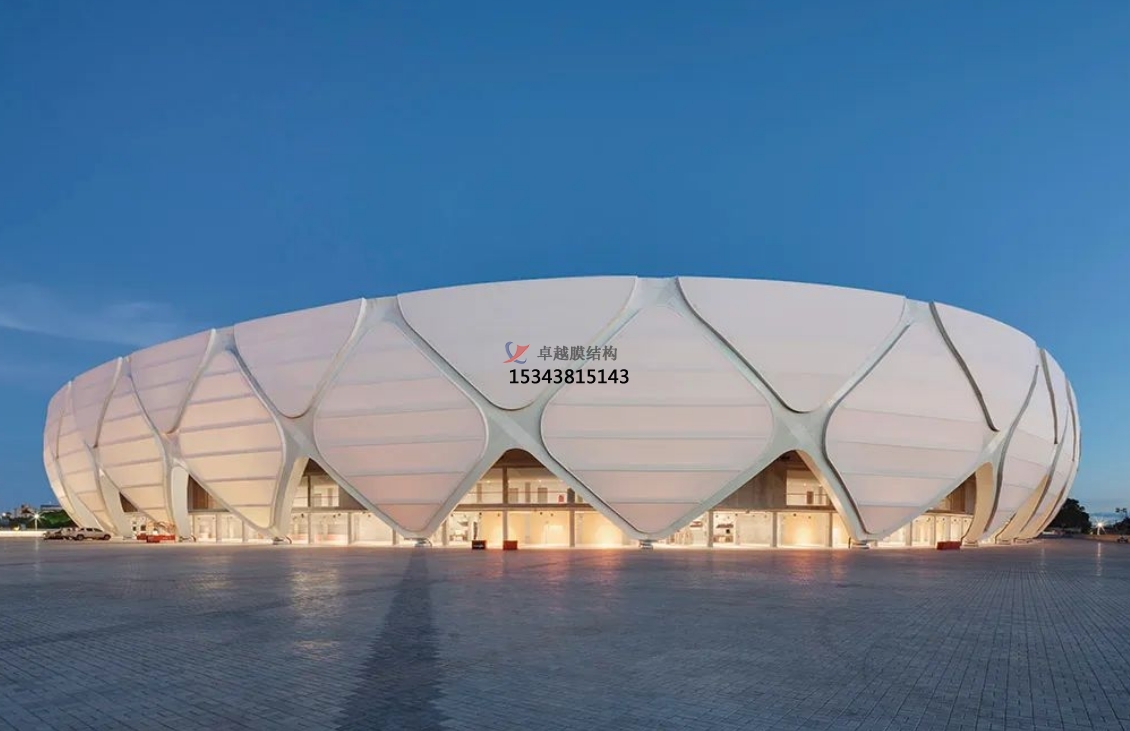 膜結構作為一種新的建筑形式,憑其質輕、大跨度、造型自由獨特、高透光、安裝快、經濟性等優點,已廣泛應用于全國各大賽事場館及體育館,憑其自身的優越性能,逐漸成為大型體育場的首選!