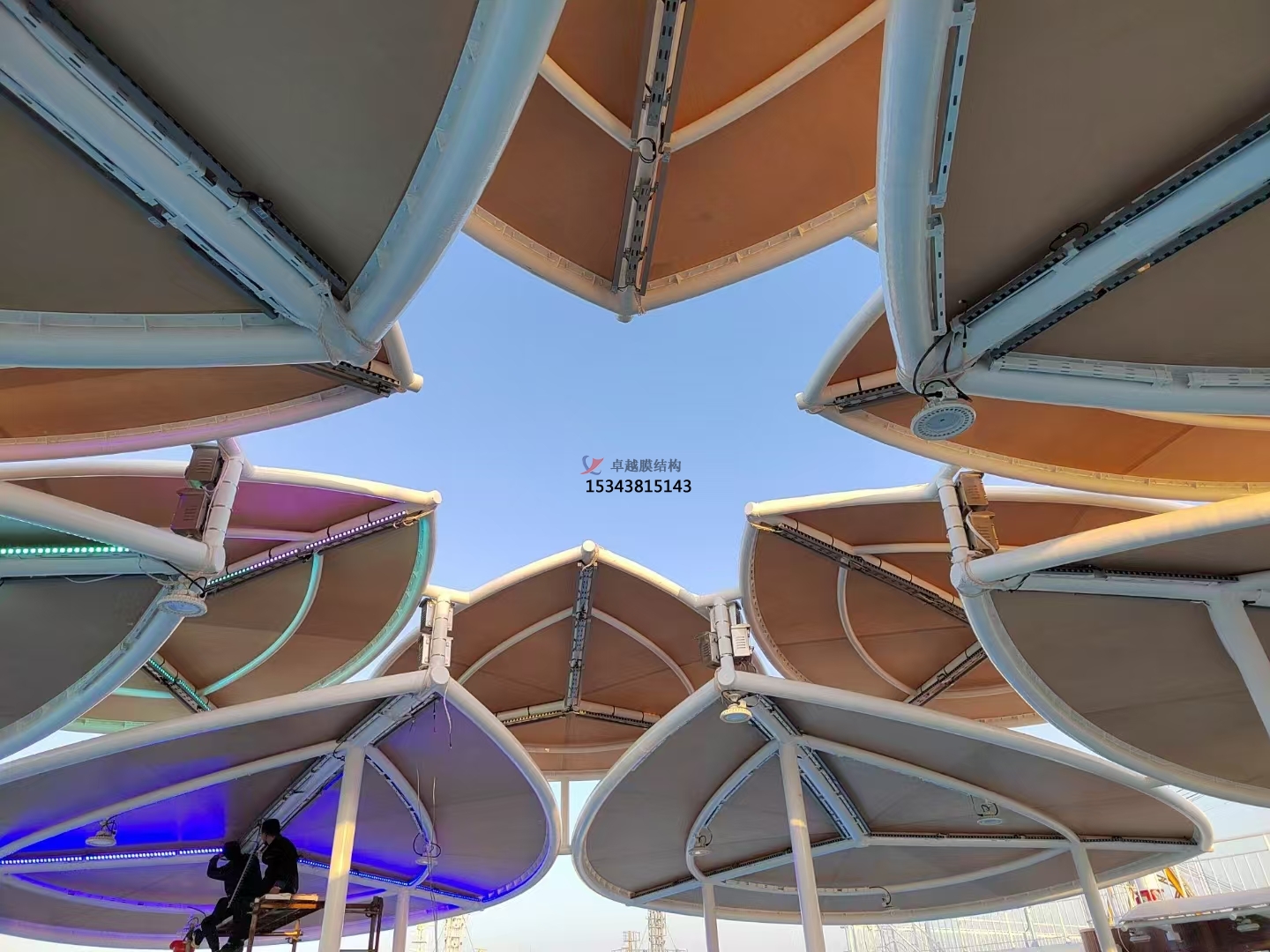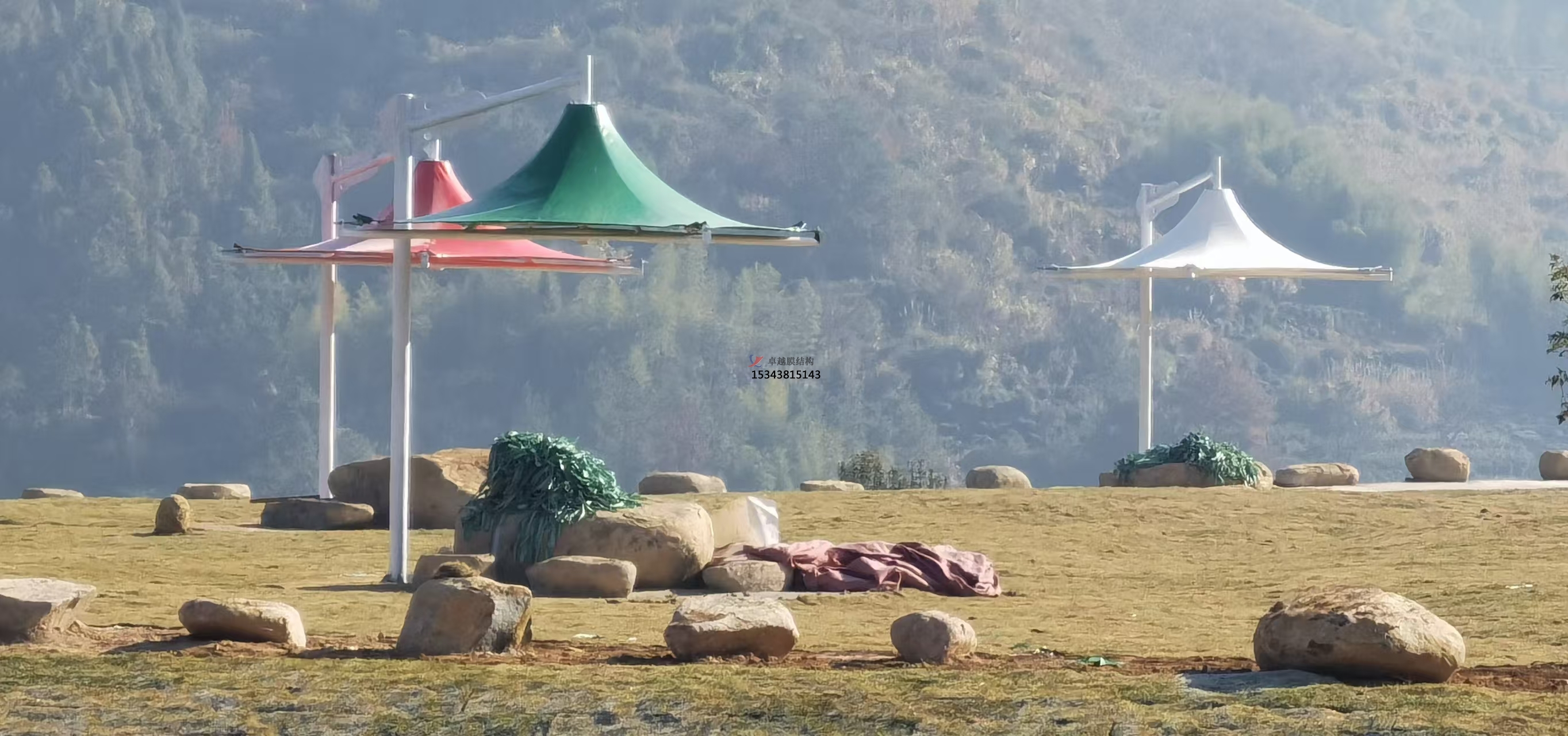 日常生活中,我們常在公園中見到白色的膜結構景觀,除了公園、商場展廳、機場大廳、標志性建筑物旁等室內外場所中均可安裝膜結構景觀。而膜結構景觀除了常見的白色模材,我們膜結構棚還有橙色、藍色等其他顏色的模材,以便搭配不同風格的場景。