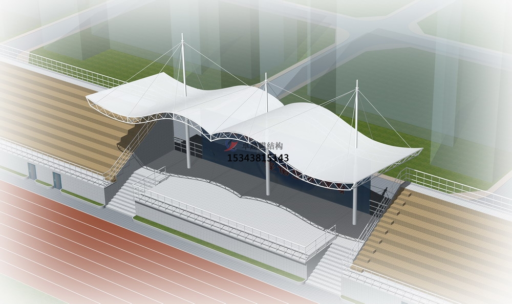 1、忻州職業技術學院體育場看臺頂棚/運動場主席臺/風雨操場雨棚生產廠家