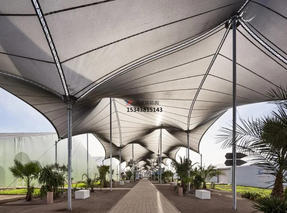 索膜結構,顧名思義,是由高強度柔性薄膜材料與其他材料(如鋼索、鋼結構支柱等)共同作用而形成的一種穩定的空間結構形式。其最大的特點在于造型自由、輕巧、柔美,能夠創造出各種優美的曲面造型,給人以強烈的視覺沖擊力。此外,索膜結構還具有阻燃、制作簡易、安裝快捷、節能、易于維護以及使用安全等優點,這些特點使得它在世界各地得到了廣泛的應用。