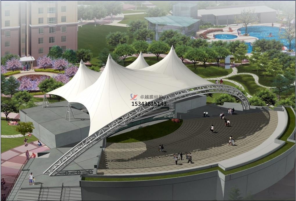 膜結(jié)構(gòu)景觀打破了傳統(tǒng)的建筑結(jié)構(gòu)情勢,具備造型幽美、飄逸自然、融藝術(shù)、力學于一體,可充足發(fā)揮建筑師的設(shè)想力,建造成各種造型,且色彩豐碩,膜結(jié)構(gòu)景觀被譽為21世紀的現(xiàn)代高科技綠色建筑;