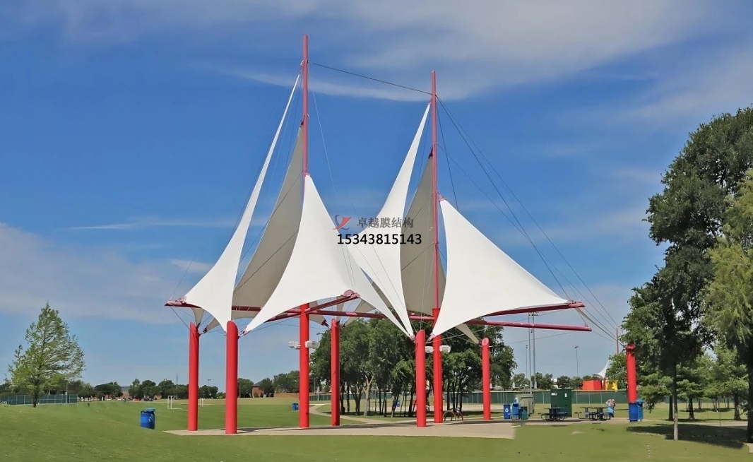 在社區和住宅小區內,景觀棚膜結構也有著諸多應用。比如在小區的兒童游樂區設置膜結構遮陽棚,讓孩子們在玩耍時能夠避免陽光直射;在小區的休閑廣場上搭建膜結構景觀亭,為居民們提供一個聊天、下棋、休閑娛樂的好去處;或者在小區的停車位上方安裝膜結構車棚,既保護了車輛免受日曬雨淋,又提升了小區整體的美觀度。