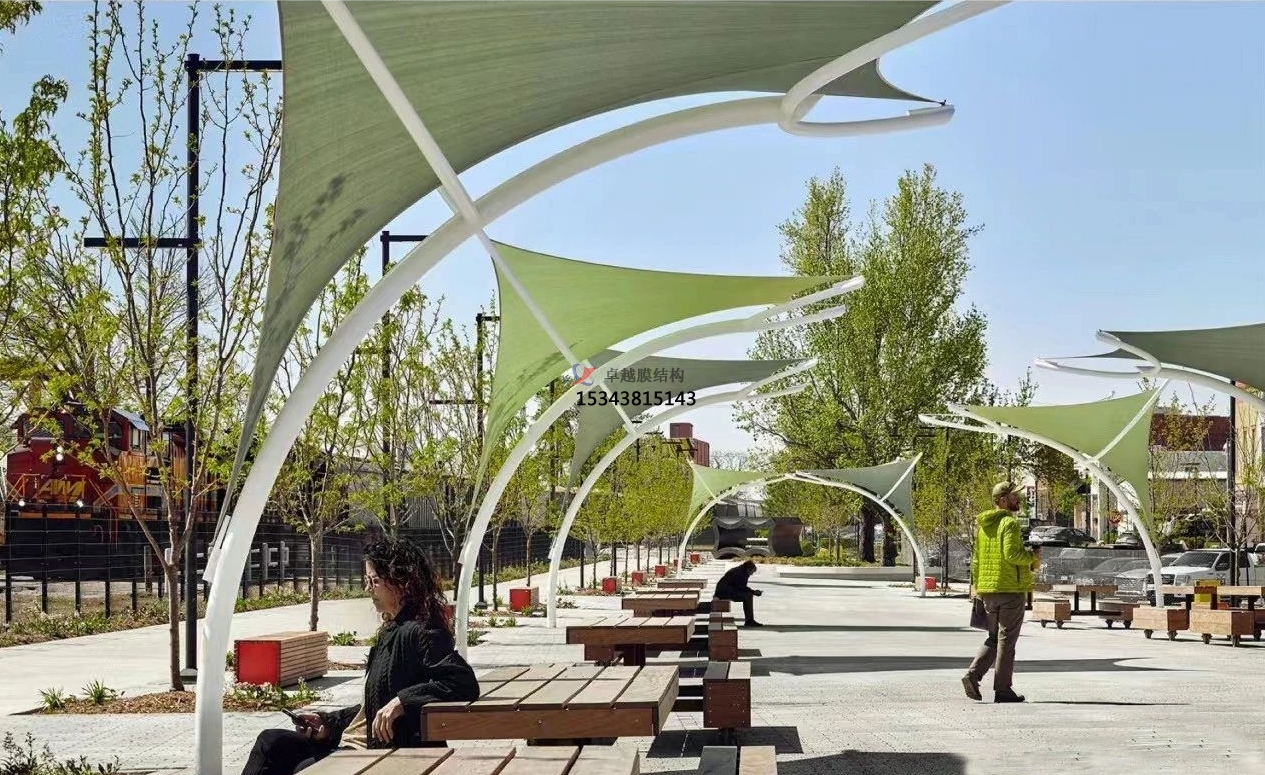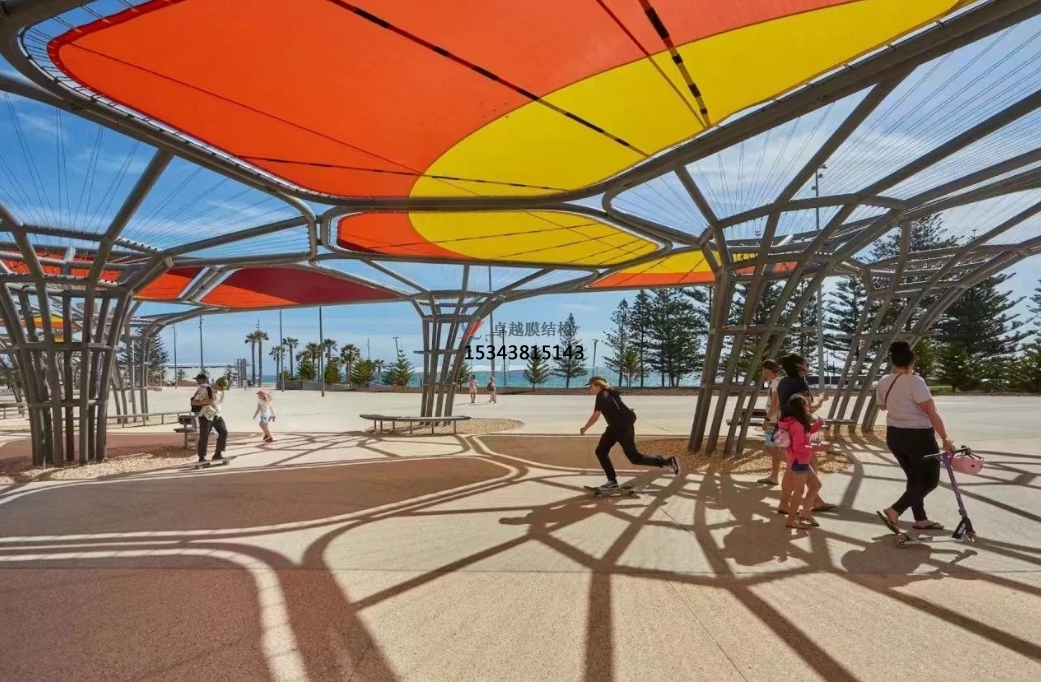 未來的景觀棚膜結構將不再僅僅局限于單一的遮陽避雨功能,而是會朝著多功能融合的方向發展。比如,在景觀棚內集成光伏發電系統,將太陽能轉化為電能,實現能源的自給自足;或者結合聲學設計,使其具備良好的隔音效果,可用于舉辦小型音樂會、演講等活動;還可以與水幕景觀、噴泉等水景元素相結合,打造出更加豐富多彩的戶外體驗空間。